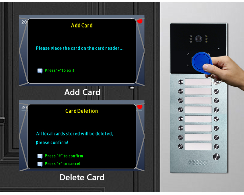 Multifunction support 128 users interphone security intercom system for big building RFID card and password to access function