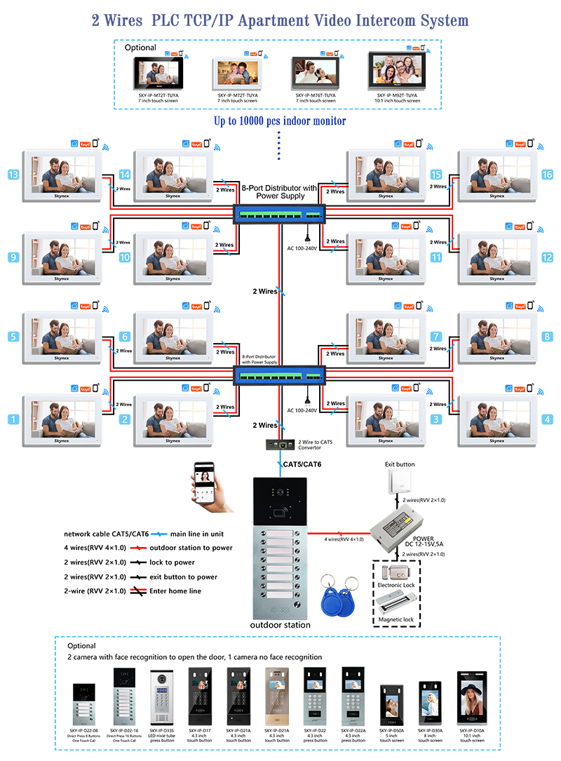 2 Wires lp System-Apartment 1 to 1 Diagram